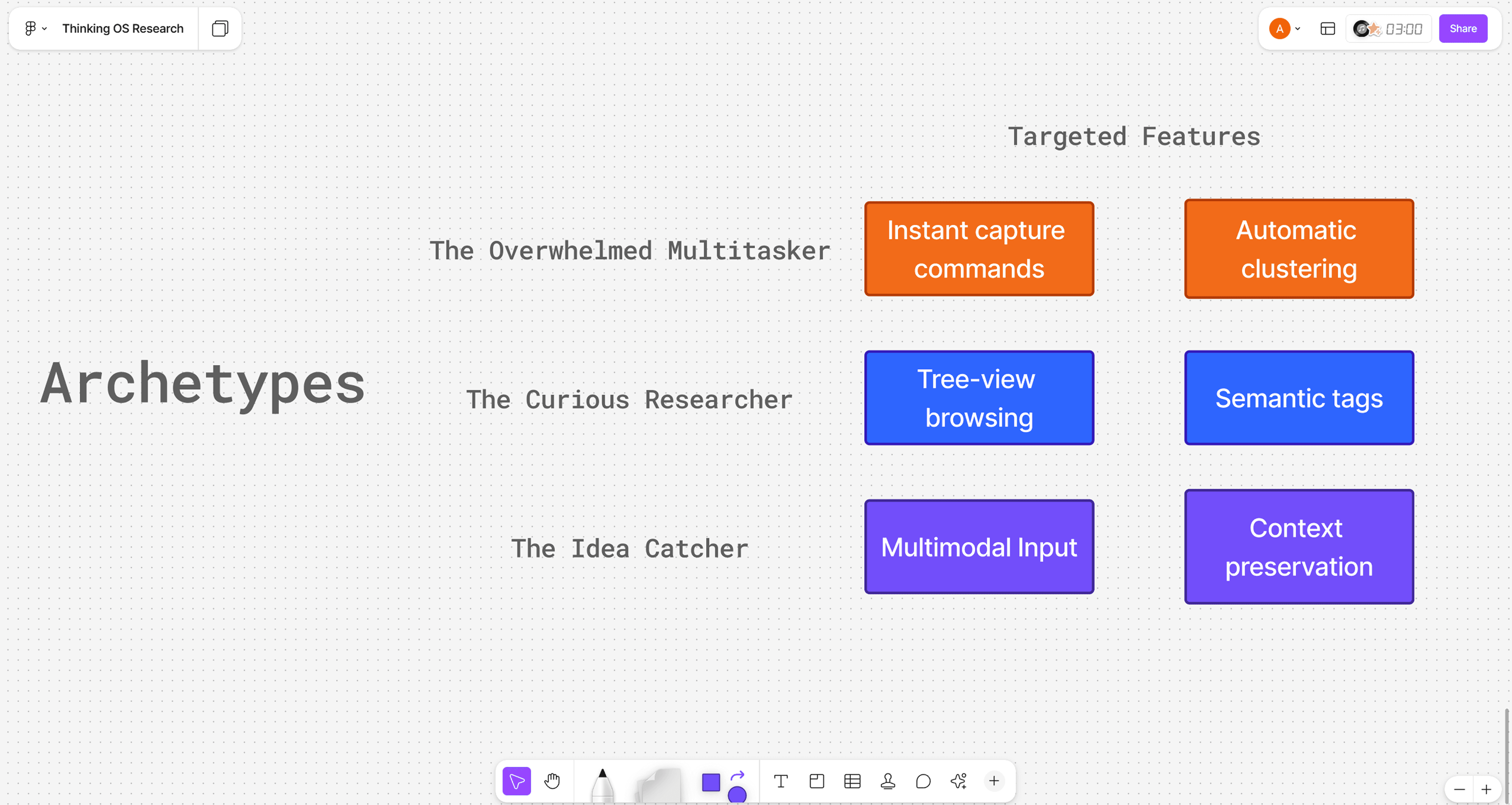Thinking OS. Traditional note-taking tools capture information but don’t help users make meaning or evolve ideas.